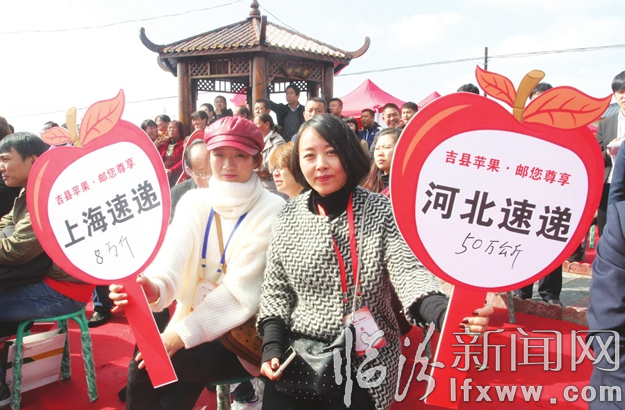临汾新闻网讯 金秋十月秋色浓,壶口岸畔果飘香。10月12日,吉县苹果全国邮政订货会暨“一县一品”推介上线活动在吉县东城乡举行。