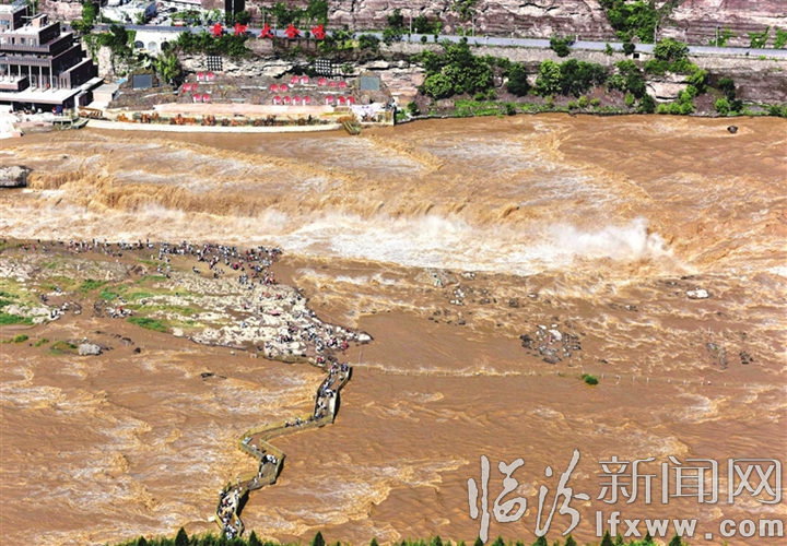 临汾新闻网讯 近日,受上游降雨影响,黄河晋陕峡谷水量大涨,壶口瀑布每秒流量达到2650立方米,浊浪滚滚奔腾而下,气势磅礴,吸引了众多游客。