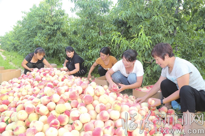 临汾新闻网讯 日前,浮山县东张乡尧村翔云蜜桃种植专业合作社的300亩桃园进入采摘期。该合作社种植的“中秋蜜”桃色泽好、口感佳,吸引了太原、天津、浙江等地的客户前来收购,每亩地可收入10000元。图为桃农正忙着将刚采摘的蜜桃分拣装箱。