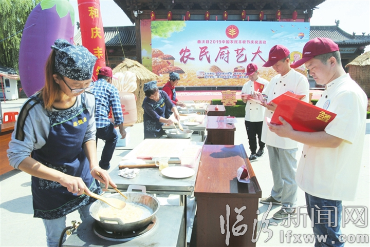 临汾新闻网讯 9月23日,曲沃县举办了2019年中国农民丰收节农民厨艺大赛。比赛中,选手们驾轻就熟,葱花旋子、鸡蛋饼、韭菜盒子等家常传统美食一一出炉,精湛的厨艺赢得了现场观众的阵阵掌声。