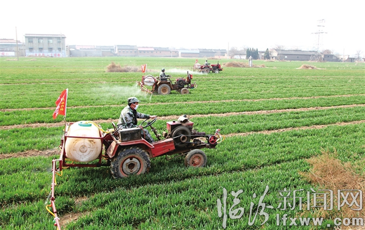 临汾新闻网讯 3月8日,在襄汾县邓庄镇,泽阳粮食种植专业合作社土地托管服务车正在对麦田喷洒除草剂。