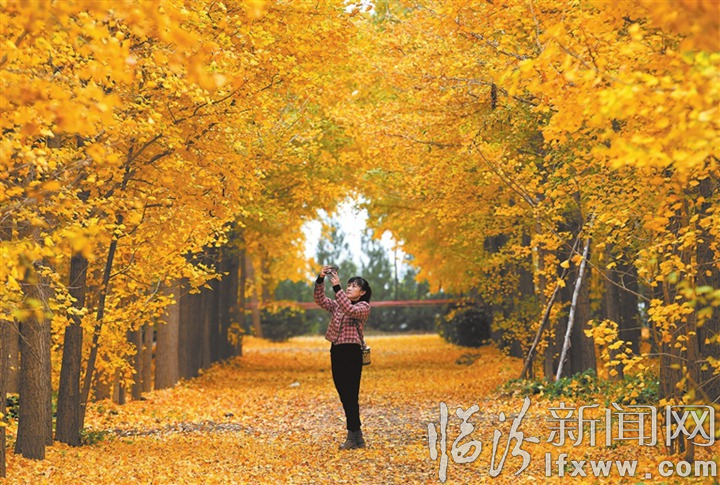 临汾新闻网讯 深秋时节,位于翼城县唐兴镇古城社区的百亩银杏林迎来最佳观赏期,景色绚丽迷人。图为游客在银杏林中赏景拍照。