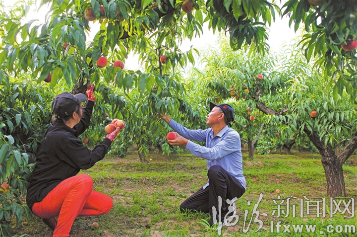 临汾新闻网讯 眼下,襄汾县新城镇吴家庄村的500余亩蜜桃喜获丰收,种植户正忙着对成熟的蜜桃开展采摘、分拣、装箱、销售等系列作业,田间地头一派忙碌的丰收景象。