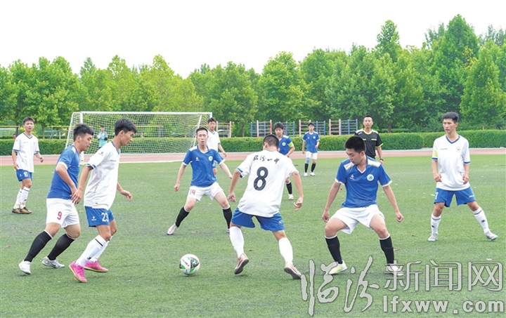 临汾新闻网讯 7月24日,由市教育局、市体育局主办的“奔跑吧·少年”2023临汾市中小学校园足球赛在临汾第一中学校开赛,共有61支队伍800余名队员参赛。图为运动员在赛场上激烈角逐。