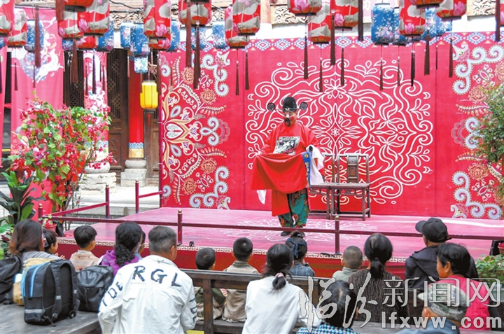 临汾新闻网讯 随着国庆、中秋假期临近,曲沃春秋晋国城景区游客增多,景区紧紧围绕假日经济,通过创新拓展互动性演出、文创打卡,制定应急预案等措施,提升景区服务能力和吸引力,增强游客的体验感。图为9月26日,景区演出人员与游客互动。