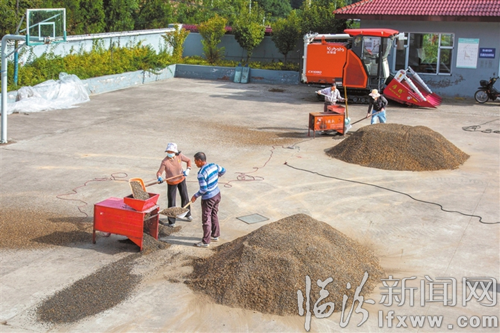 临汾新闻网讯 近期,连续降雨给秋收带来不利影响。为减少农户损失,我市各地积极协调机械与人力,紧盯雨停有利时机,全力帮助农户抢收农作物,确保应收尽收、颗粒归仓。图为近日,乡宁县管头镇东团村村民趁晴好天气晾晒油葵。