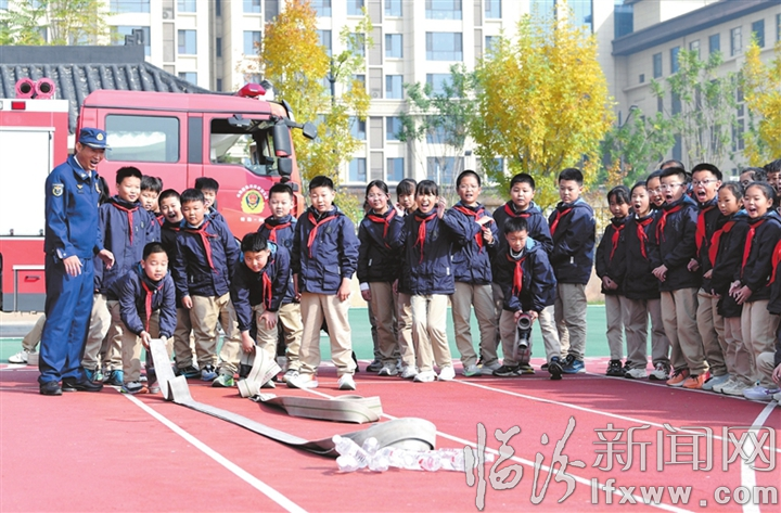 临汾新闻网讯 11月4日,在临汾一中第一附属学校消防体育课上,学生们进行“水带保龄球”比赛。全国消防宣传月期间,尧都区消防救援大队20名校外辅导员走进中小学校园,开展多种形式消防安全教育活动,提升学生消防安全素养和自防自救能力。