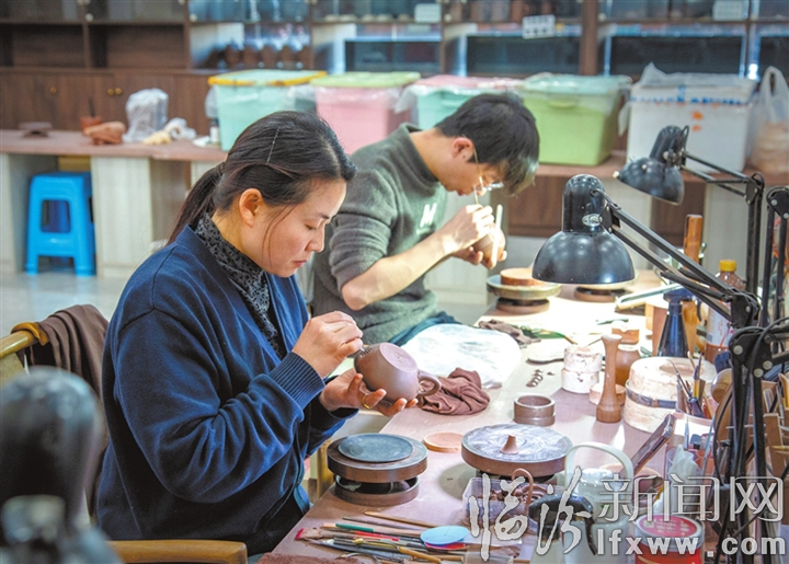 临汾新闻网讯 1月16日,在乡宁县紫砂陶小镇生产车间,工人们正在加紧制作紫砂工艺品,以完成客户订单。