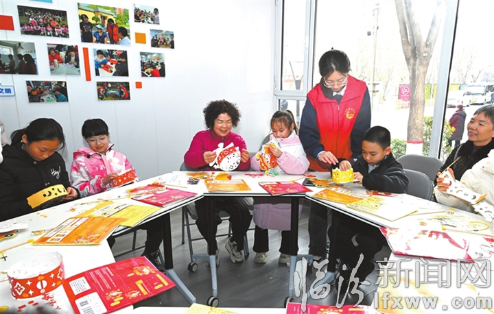 临汾新闻网讯 2月5日,在尧都区鼓楼西街街道御景社区新时代文明实践站内,“七彩假期”志愿服务队的志愿者们带领孩子们用彩色卡纸、透明纸杯等材料,制作出一个个造型各异的新春灯笼,丰富他们的假期生活。