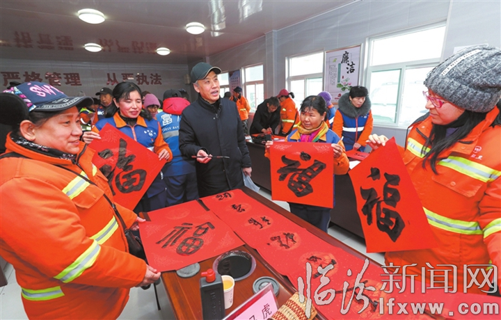 2月4日,市文联、市书法家协会联合举办了“万福迎春”写春联、送祝福公益活动,为环卫工作者送去新春的祝福。