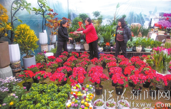 新春佳节将至,侯马市南西庄花卉苗木市场迎来销售旺季,杜鹃花、蝴蝶兰、乒乓菊等各色年宵花姹紫嫣红,吸引不少居民前来选购。