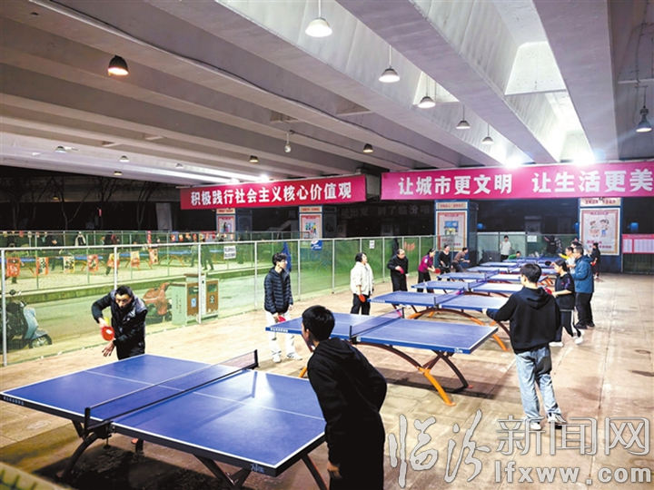 临汾新闻网讯 2月26日,市民在位于市区鼓楼西街彩虹桥下的汾河乒乓球场打球休闲娱乐。近年来,我市依托丰厚的体育历史资源、优势的体育运动项目,将体育融入城市发展,使其成为城市的一张闪亮名片。
