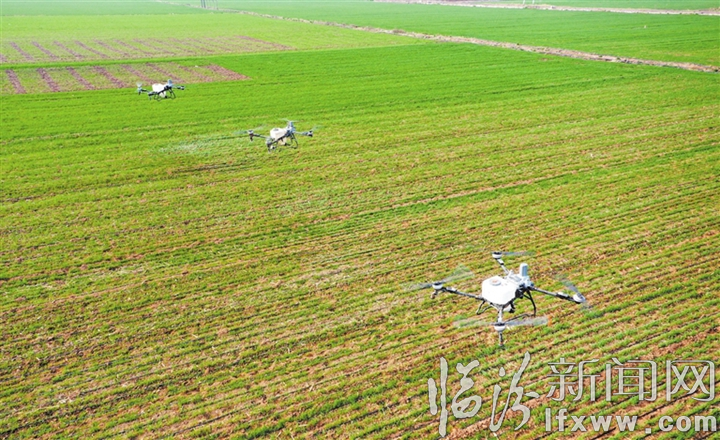 临汾新闻网讯 当前正值冬小麦促弱转壮的关键时期,连日来,洪洞县农业农村局农技人员走进田间地头,开展技术指导,强化小麦春季管理,为夏粮丰产丰收提供有力保障。图为3月16日,在辛村镇辛北村的麦田里,农技人员在指导无人机“飞手”操作无人机喷施叶面肥。