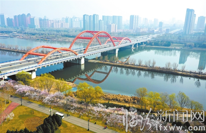 随着气温逐渐回暖,汾河临汾城区段沿岸的山桃花迎来了一年中最美的时节,粉白相间的花朵缀满枝头,吸引众多市民前来打卡,感受春天的气息。