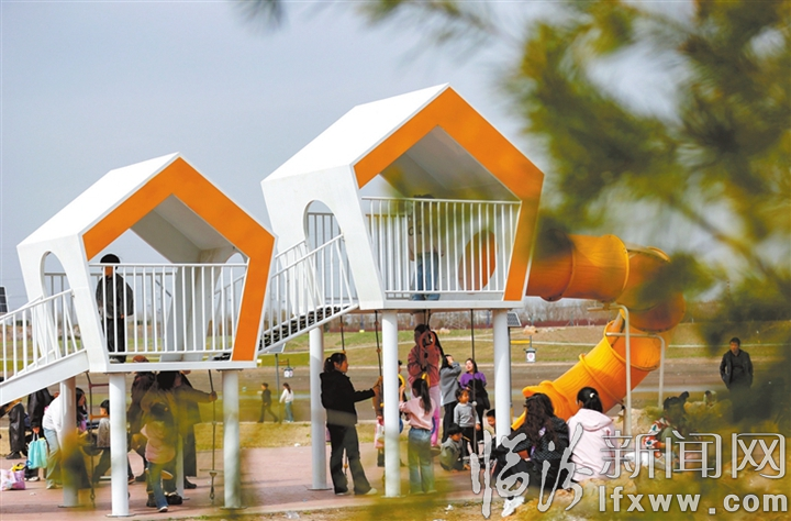 3月22日,小朋友们在襄汾县城北儿童乐园内玩耍。 李现俊 摄