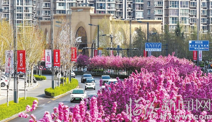 市区解放路花墙繁花正艳、色彩宜人
