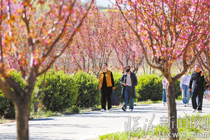 临汾新闻网讯 4月6日,游人在襄汾县尧京酒庄景区樱花大道观赏樱花。连日来,该景区樱花大道内樱花锦簇,婀娜多姿、格外迷人,与道路两旁的葡萄果园、远处的山峦梯田相映成景,美不胜收,吸引不少游客前来游玩,乐享春日美好时光。