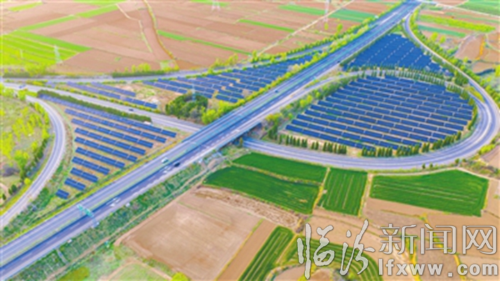 临汾新闻网讯 4月16日,霍州市高速路口,落日为连片光伏板镀上金辉。霍州市依托高速互通空间打造的光伏项目,实现路域资源高效利用,推动清洁能源产业发展,为霍州构建绿色产业体系、推进“双碳”战略注入新动能。