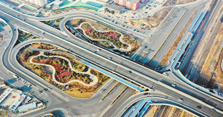 12月13日,夜色中的市区快速中环跨铁路大桥流光溢彩,景色迷人。从高空俯视城市立交桥,车流如箭,光...