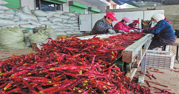 9月10日,襄汾县邓庄镇席村村民在田间采收辣椒。席村的300余亩辣椒迎来丰收采摘季,当地农民抢抓晴好...