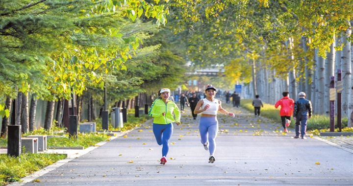 8月10日,市民在市汾河文化生态景区百里汾河自行车长廊棋阁广场段骑行锻炼健身。据悉,临汾百里汾河...