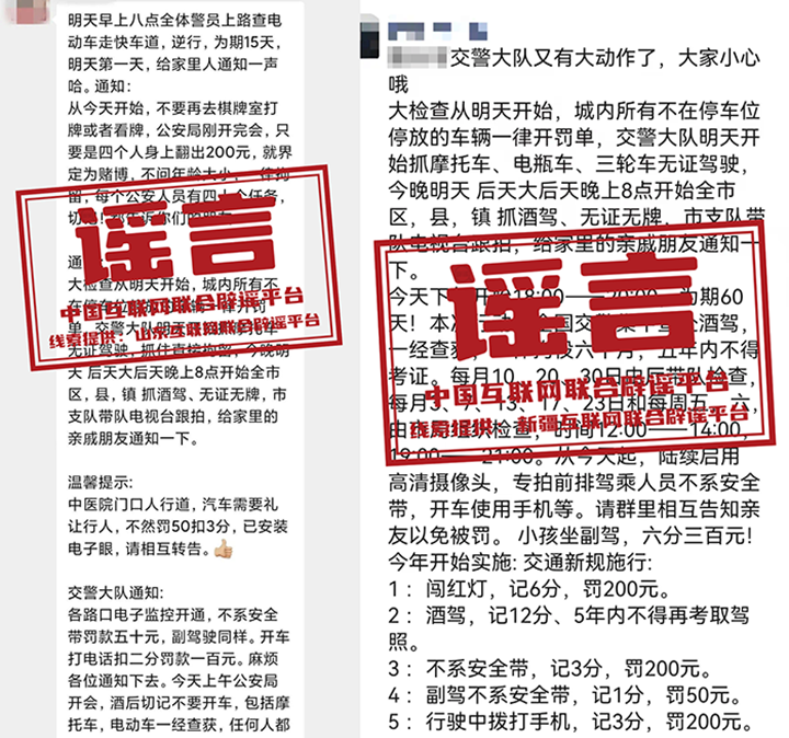 真相:近日,网上有多则消息称“交警全城大检查”“即日起,交警将在全市范围内抓酒驾、无证无牌、车辆违停等,市支队带队、电视台跟拍”,引发关注。 对此,山东青岛、新疆吐鲁番相关部门均表示,该消息为虚假信息。通过网络搜索发现,此类谣言曾在全国多地传播且相关部门已多次辟谣,属于典型的“旧谣新传”。请广大网民严格遵守相关法律法规,立即停止传播扩散,做到不造谣、不信谣、不传谣,共同营造清朗的网络环境。(来源:山东互联网联合辟谣平台、“新疆网络辟谣”微信公众号)