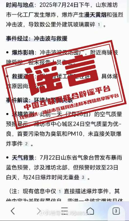 辟谣:“潍坊市发生爆炸事故”?当地回应系谣言