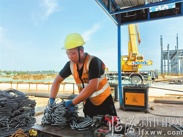 深入施工现场,钢筋工执勤班长张鹏正在钢筋加工棚内作业。“我们加工的钢筋,每一批都需要经过工人自查、工长检查、监理验收三个环节,以确保百分百按图纸施工,避免对后续施工产生不利影响。”