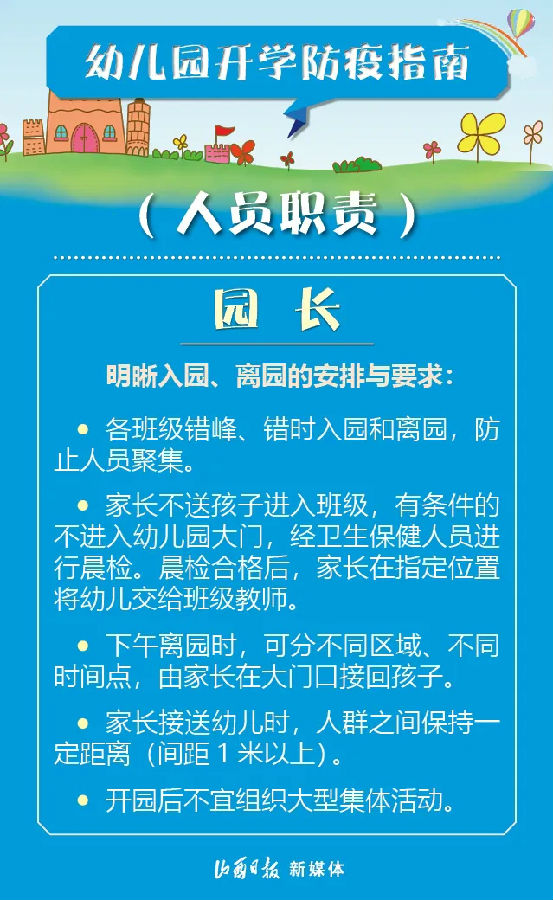 “六一”儿童节刚刚过完,我省幼儿园陆续开学。那么,在这个特殊的时期,园长职责是什么?教师应该怎么做?活动室如何消毒?卫生间怎样处置?