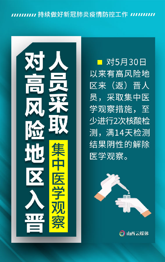 6月11日以来,部分地区已报告多例新冠肺炎本土病例。为坚决落实好“外防输入、内防反弹”防控策略,6月14日,从省新冠肺炎疫情防控工作领导小组办公室获悉:我省正在通过加强高风险地区入晋人员健康管理,开展农贸、海鲜市场风险排查等多项举措,持续做好全省疫情防控工作。