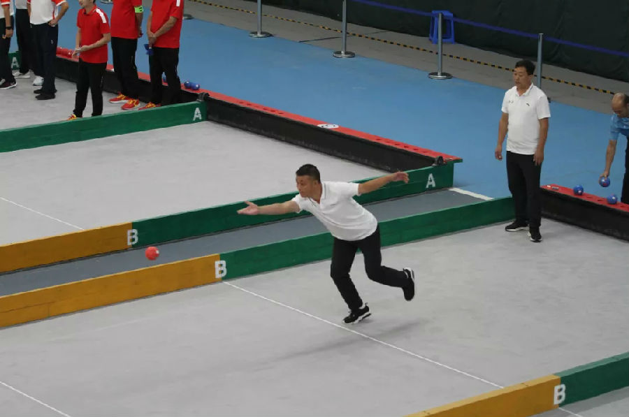 塑质地掷球三人赛用球有大球和小球两种,大球为队员投掷用球,小球为比赛的目标球,裁判员根据双方投掷的大球距小球远近打分,近者得分,远者不得分,先得9分者胜出。山西队在小组赛、半决赛一路横扫,和广东队会师决赛。比赛场上,山西队滚靠、滚击、抛击,精彩绝技层出不穷,一度以7分的大比分领先对手。最终,山西队采用滚靠技术稳步扩大战绩,直至9比0赢得胜利,登上冠军之位。