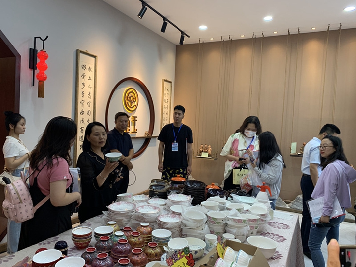 第十七届全国网络媒体山西行记者团来到参观平定县砂器(紫砂)文化示范区。记者杨惠生摄