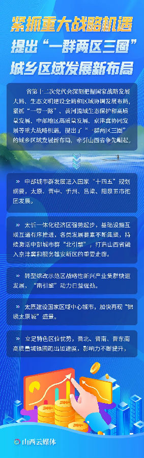 党的十八大以来,习近平总书记三次到山西考察调研,作出一系列重要指示,希望山西在转型发展上率先蹚出一条新路来。牢记殷殷嘱托,山西砥砺前行。面对“如何率先蹚出转型新路”“如何在中部地区争先崛起”等“时代之问”,山西省以全新视野谋划长远发展,优化布局、提升能级,用好改革开放关键一招,着力打造“三区三地”,为全方位推动高质量发展开拓新空间、注入新动能。