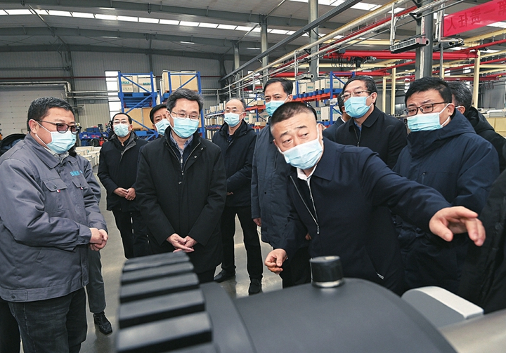 2月15日,省委书记蓝佛安走进大同经济技术开发区巴什卡机械制造公司车间察看生产装配工序。山西日报记者史晓波摄