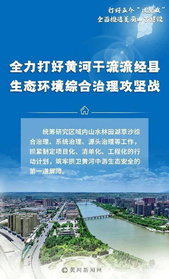 近日,全省生态环境保护大会在太原召开。会议强调,要全面推进美丽山西建设,着力打造黄河流域生态保护和高质量发展重要实验区,努力蹚出北方生态脆弱地区和资源型地区生态文明建设的新路径,为进一步加快转型发展、奋进“两个基本实现”目标提供坚实生态环境支撑。