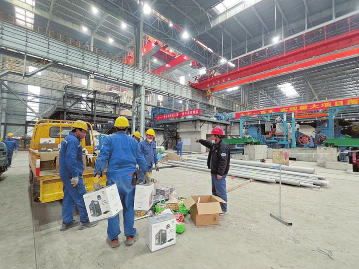 山西宏达钢铁集团年产100万吨薄带铸轧项目施工现场。记者周明飞摄