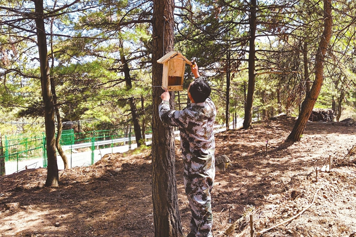 下午2时,巡护队抵达鸟类固定监测点。解翔拿出望远镜,很快在油松林上方发现5只大嘴乌鸦:“它们对环境敏感,能在这里稳定活动,说明林区生态持续向好。听说去年咱们救助的3只鸟已经成功放归野外。”中条林局专门指定救护机构,从接收、诊疗到康复放归都有规范记录,配齐了诊疗室、康复笼舍等设施,并主动对接属地公安、市场监管等部门,建立“信息互通、联合执法”工作机制,联合开展“网盾”专项执法行动,重点排查林区周边花鸟市场、物流站点,严厉打击非法收购、出售、寄递鸟类及其制品的行为。
