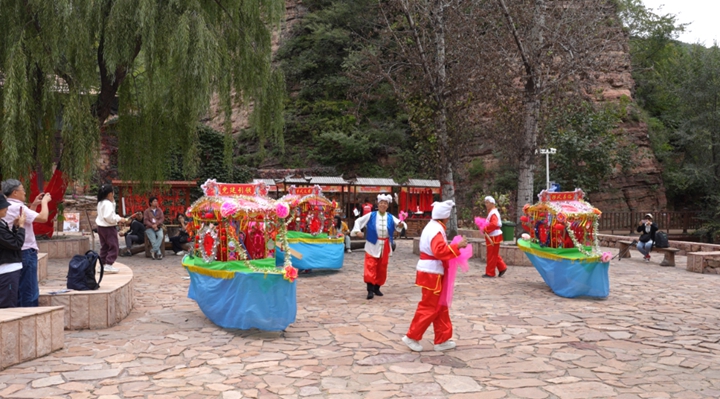黄崖洞文化旅游区内,游客在观赏节目。新华社发