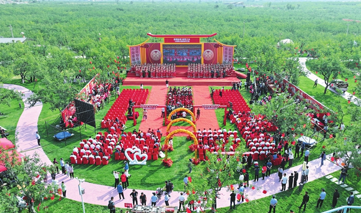 2024年全国万人集体婚礼山西运城稷山分会场活动在国家板枣公园举办。