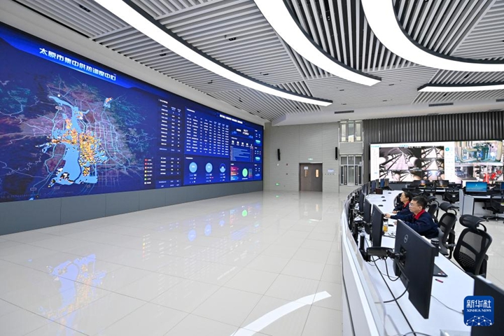 工作人员在太原市集中供热调度中心监测供热情况(10月19日摄)。