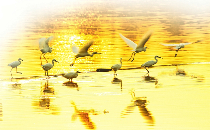 洪洞汾河湿地暮色下飞鸟蹁跹。段建武摄
