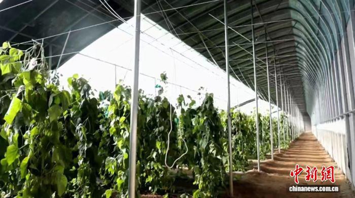 中新网朔州11月17日电 (杨佩佩 丰慧)初冬时节,气温持续走低,山西朔州应县南河种镇中曹山村的设施蔬菜大棚里却暖意融融。这里种植的第二茬西红柿即将上市,工人们正在对西红柿秧苗进行打底叶,保证光照充足。