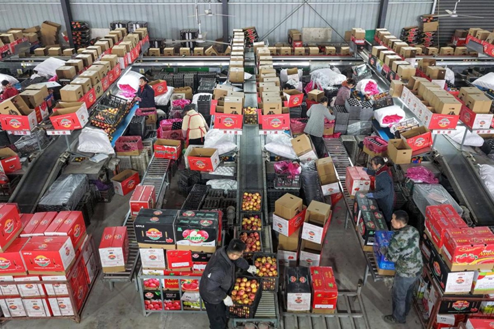 12月5日,工人在山西省运城市平陆县一家果品出口企业生产车间忙碌。闫鑫 摄