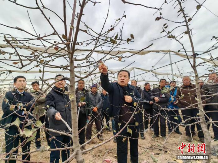 杨廷桢为果农传授果树修剪技术。侯耀强 摄