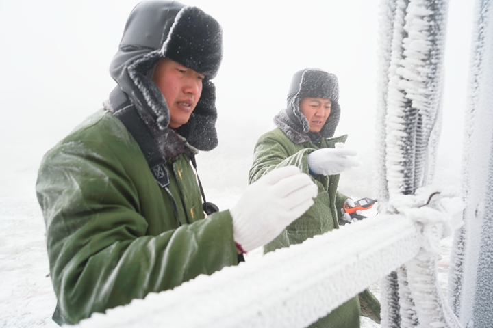 国网山西省电力公司全面加强线路运维,做好除雪、观冰、融冰工作,截至12月12日,累计出动2350人次,700余台次车辆、116架次无人机,对降雪区域变电站、输电线路、配电设备设施开展特巡特护。