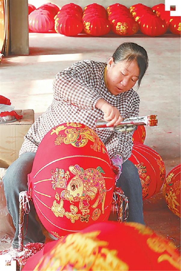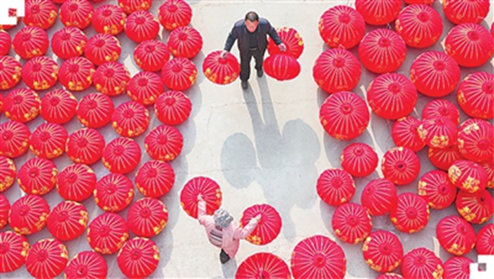新年将至,在山西运城市稷山县稷峰镇杨赵村,灯笼生产正火热进行。