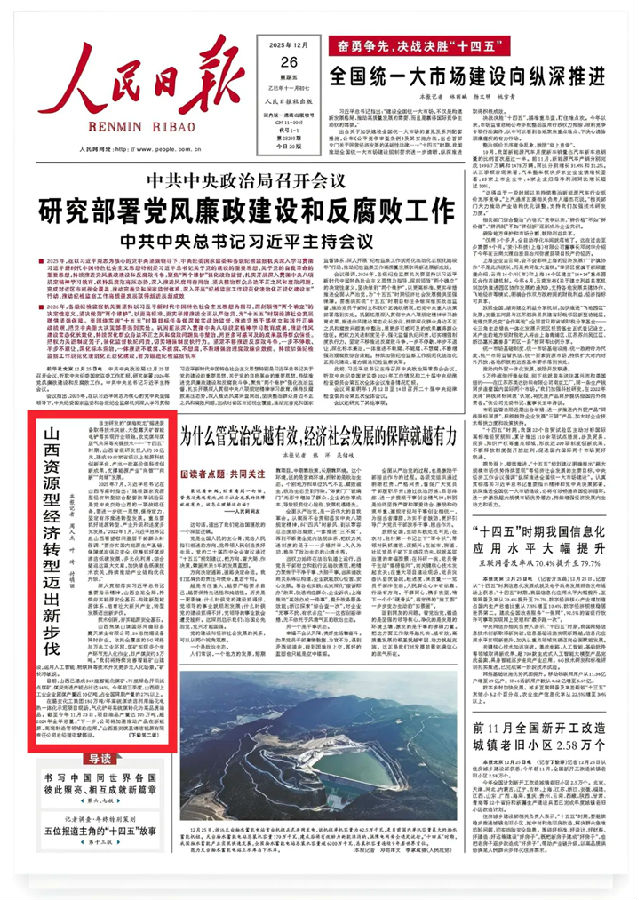 ▲12月26日《人民日报》版面