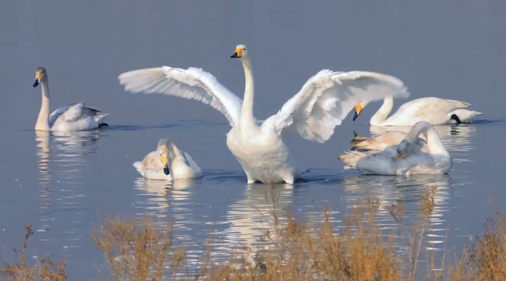 近年来,运城市持续加大盐湖生态保护与修复力度,盐湖生态持续向好,盐湖水质显著改善,生物多样性明显丰富,丰富的藻类与水生昆虫为天鹅提供了充足食物补给。运城市盐湖生态保护与开发中心工作人员介绍,据监测,今年首批天鹅较往年提前10天抵达,分布范围也进一步扩大,在中心城区的湿地公园内也陆续监测到天鹅身影。