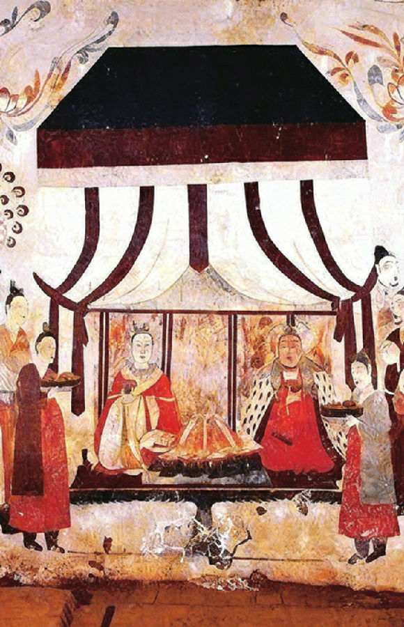 北齐徐显秀墓壁画是深藏在太原王家峰村梨园地下的艺术瑰宝。墓主人徐显秀生前官至北齐太尉、武安郡王,其墓葬于2000年至2002年被发掘,并以保存完整的大型北朝壁画墓而闻名。墓室现存壁画面积约330平方米,气势恢宏地描绘了墓主夫妇宴饮、盛大队列仪仗出行以及天象神兽等场景,人物形象超过200个,生动再现了北齐时期贵族的生活风貌与多民族交融的社会图景。
