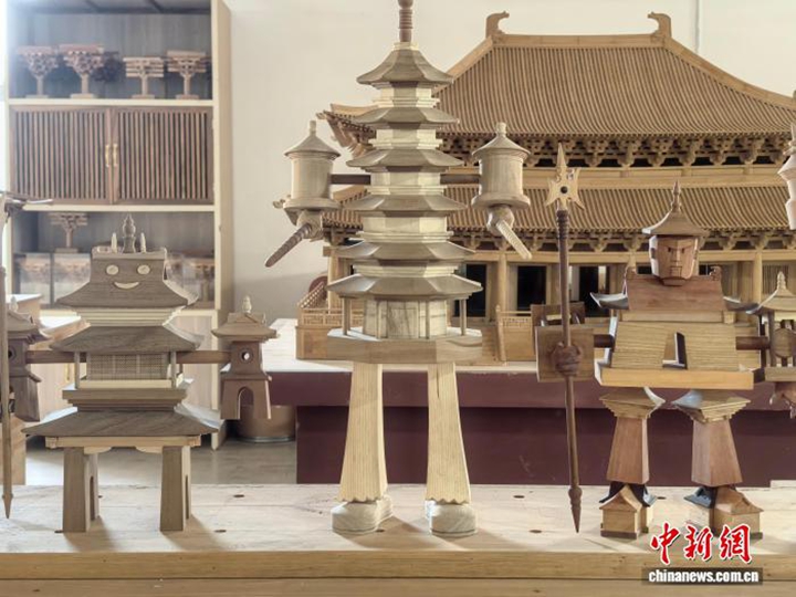 中新社太原1月10日电 题:榫卯飞檐“变身”机甲模型 山西古建寻“年轻化”表达